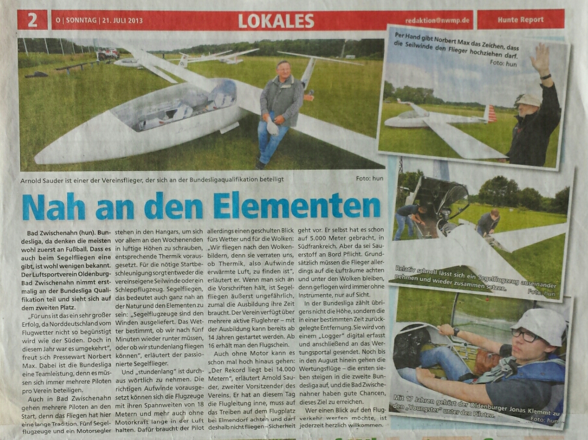 NWZ Artikel LVO 14.09.2019 zur Deutschen Meisterschaft im Segelflug